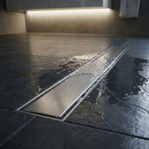 Łazienka to najbardziej wymagające inżynieryjnie pomieszczenie w domu. Źle wykonana hydroizolacja to tykająca bomba zegarowa, która grozi zalaniem mieszkania i kosztownym kuciem płytek po roku użytkowania.W Finezja Wnętrz traktujemy łazienkę jak basen. Stosujemy atestowane systemy hydroizolacji (folie w płynie, taśmy uszczelniające) w całej strefie mokrej. Nie uznajemy plastikowych listew narożnych – narożniki szlifujemy pod kątem 45 stopni, uzyskując efekt jednolitej bryły kamienia. To standard, który odróżnia zwykłą łazienkę od klasy Premium.